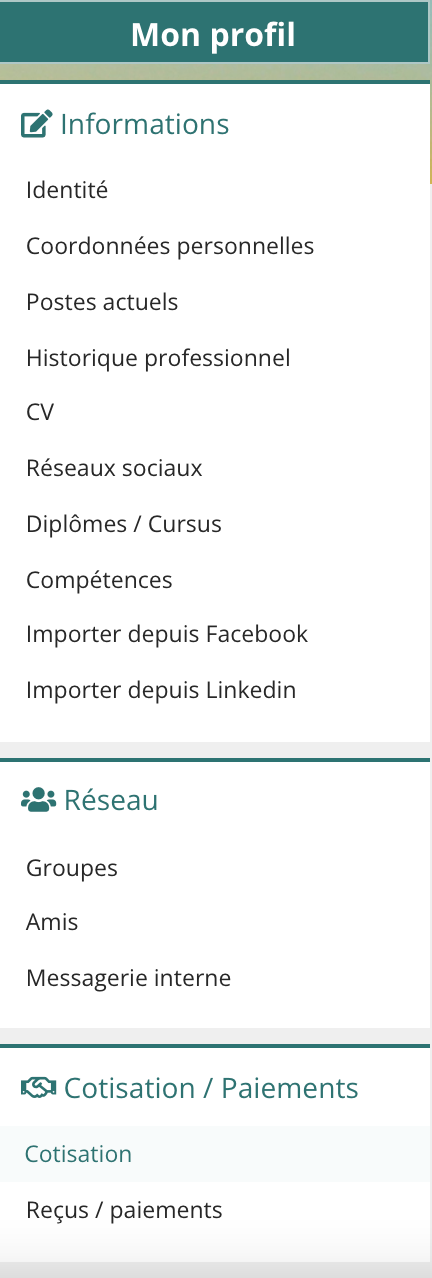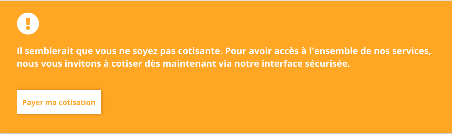 > Un encadré orange apparait avec le terme " Il semblerait que vous ne soyez pas cotisant(e). Pour avoir accès à l'ensemble de nos services, nous vous invitons à cotiser dès maintenant via notre interface sécurisée." Cliquer sur payer ma cotisation.